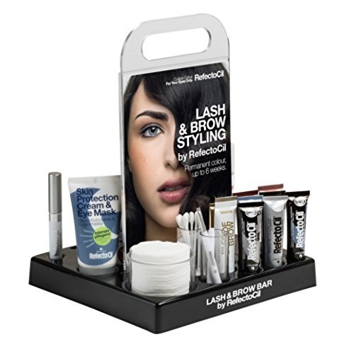 Set nga marka Refectocil, shërben për ngjyrosjen e qerpikëve dhe vetullave për përdorim profesional në sallone ondulimi, me një mbështetëse praktike.